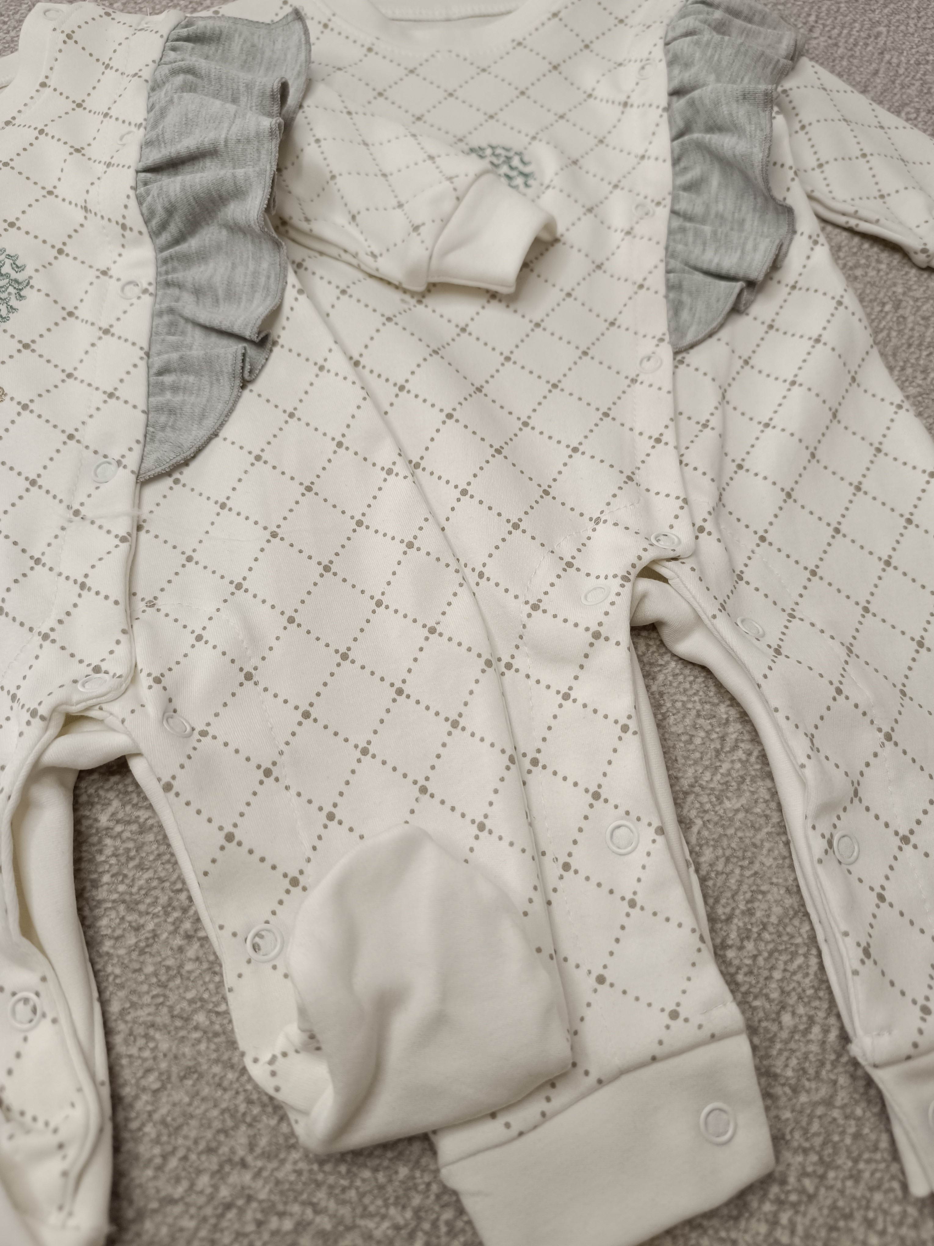0 تا 3 ماه : سرشانه تا فاق 34 / قدآستین 18 / عرض 22 / قد تا کف جوراب 45