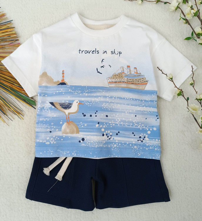 سایز 24-18ماه : قد تیشرت 40 - پهنا 32- قد شلوارک 32