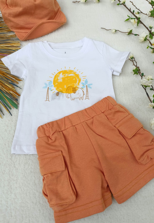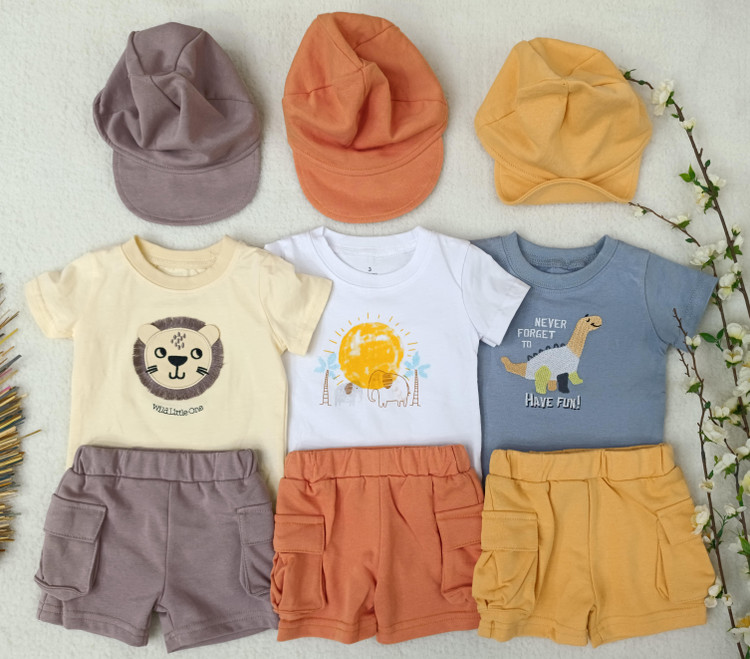 سایز 9 ماه : قد تیشرت 33 - پهنا 25 - قد شلوارک 21