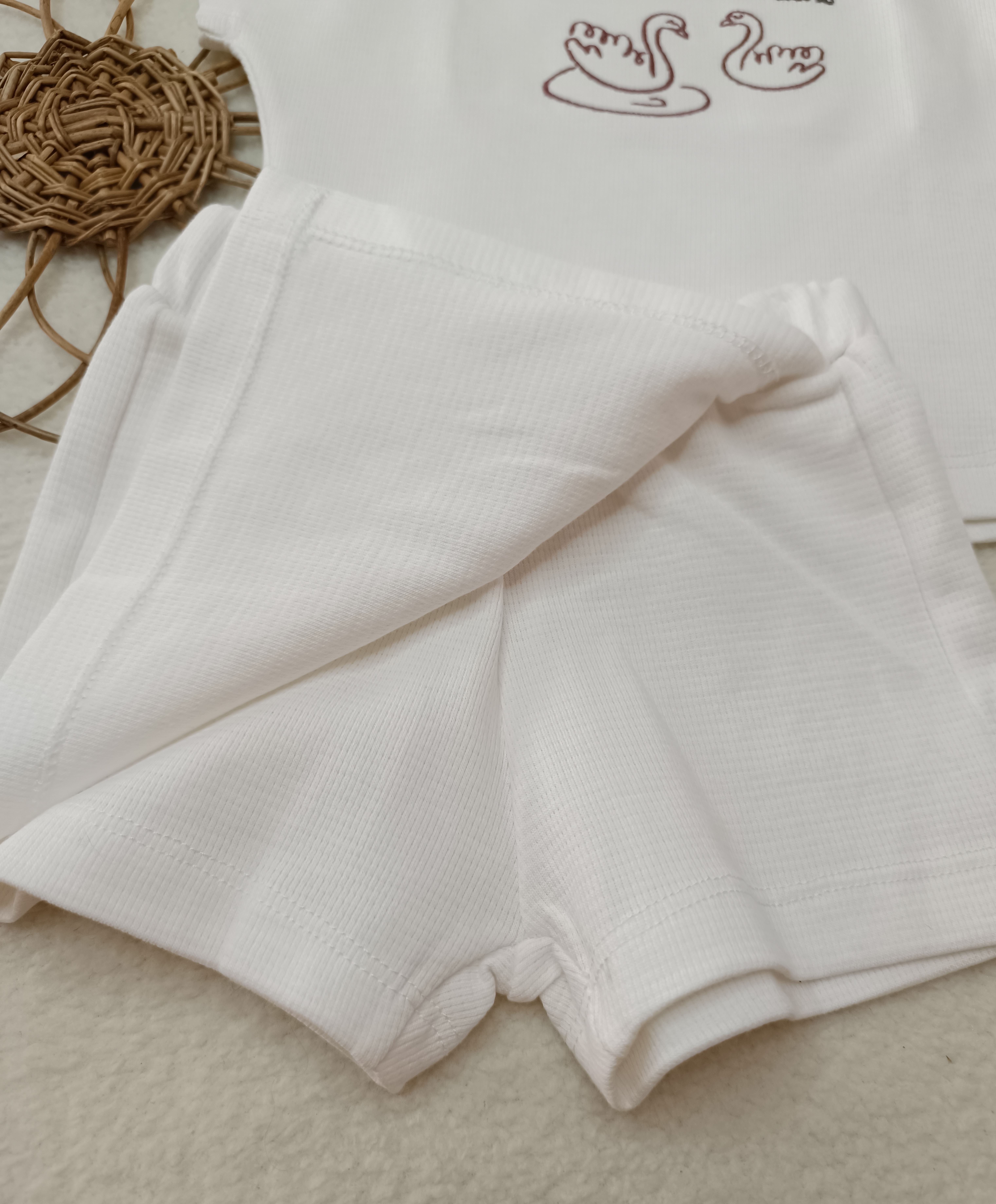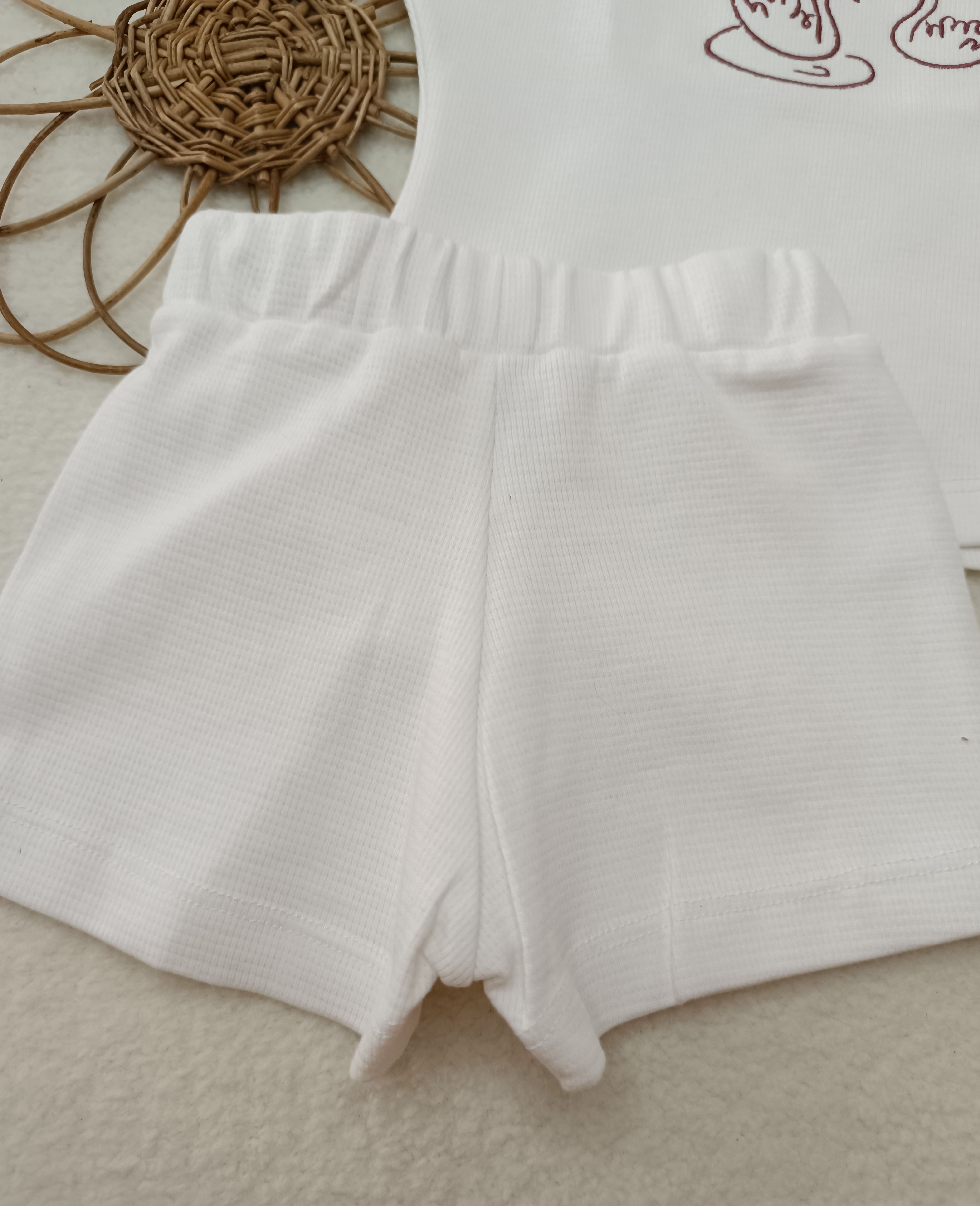 سایزبندی : 9 تا 12 ماه : قد تیشرت 35 / عرض 29 / قد شلوارک 21 2 تا 3 سال : قد تیشرت 43 / عرض 34 / قد شلوارک 24